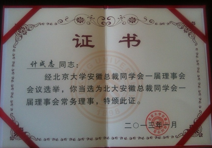 安徽環(huán)瑞總經理計成志先生予2012年順利取得北京大學EMBA高級管理碩士學位,在2013年4月參加了一屆一次的安徽總裁同學會常務理事會。