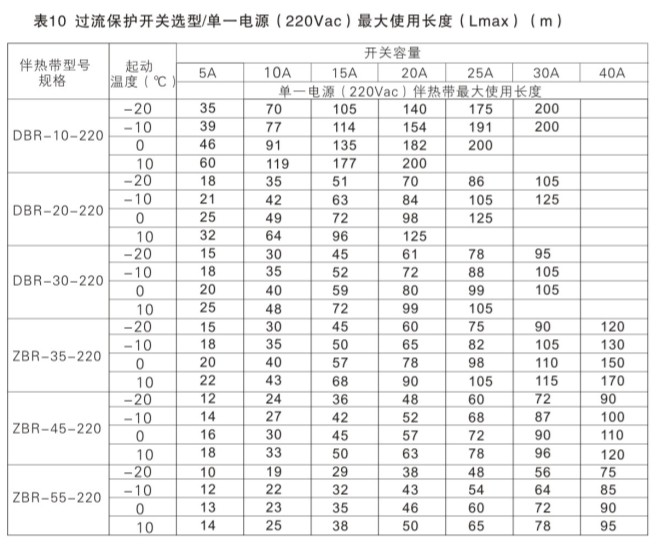 自限溫電伴熱帶如何選擇保險(xiǎn)絲及開關(guān)容量